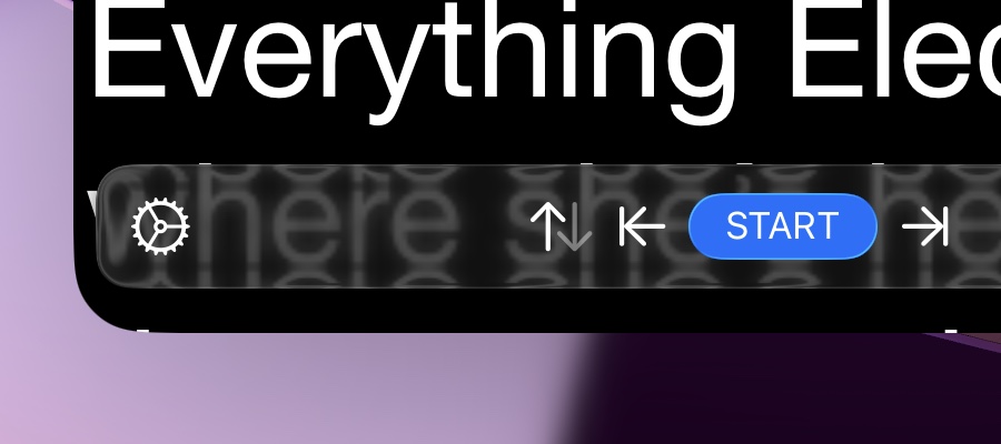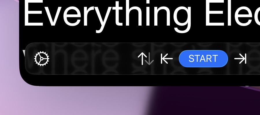 Most of the main controls in Teleprompter Pro remain as clear tappable icons. Areas that benefit from added visibility and interaction, such as the START button, now have prominent glass effects: