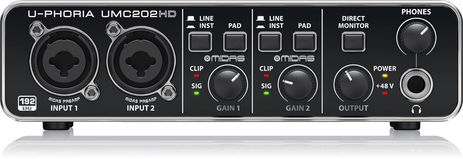 If you plan on hosting a podcast with more than one person in the room, you will need an audio interface. Priced at around £80, the Behringer UMC202HD is a great entry-level audio interface with 2 XLR/TRS inputs to achieve amazing sound quality when you’re hosting guests.
